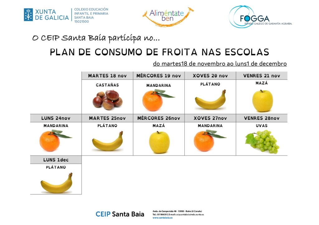 Estas son as froitas que distribuiremos durante estas semanas antes do recreo para fomentar o consumo de froita.