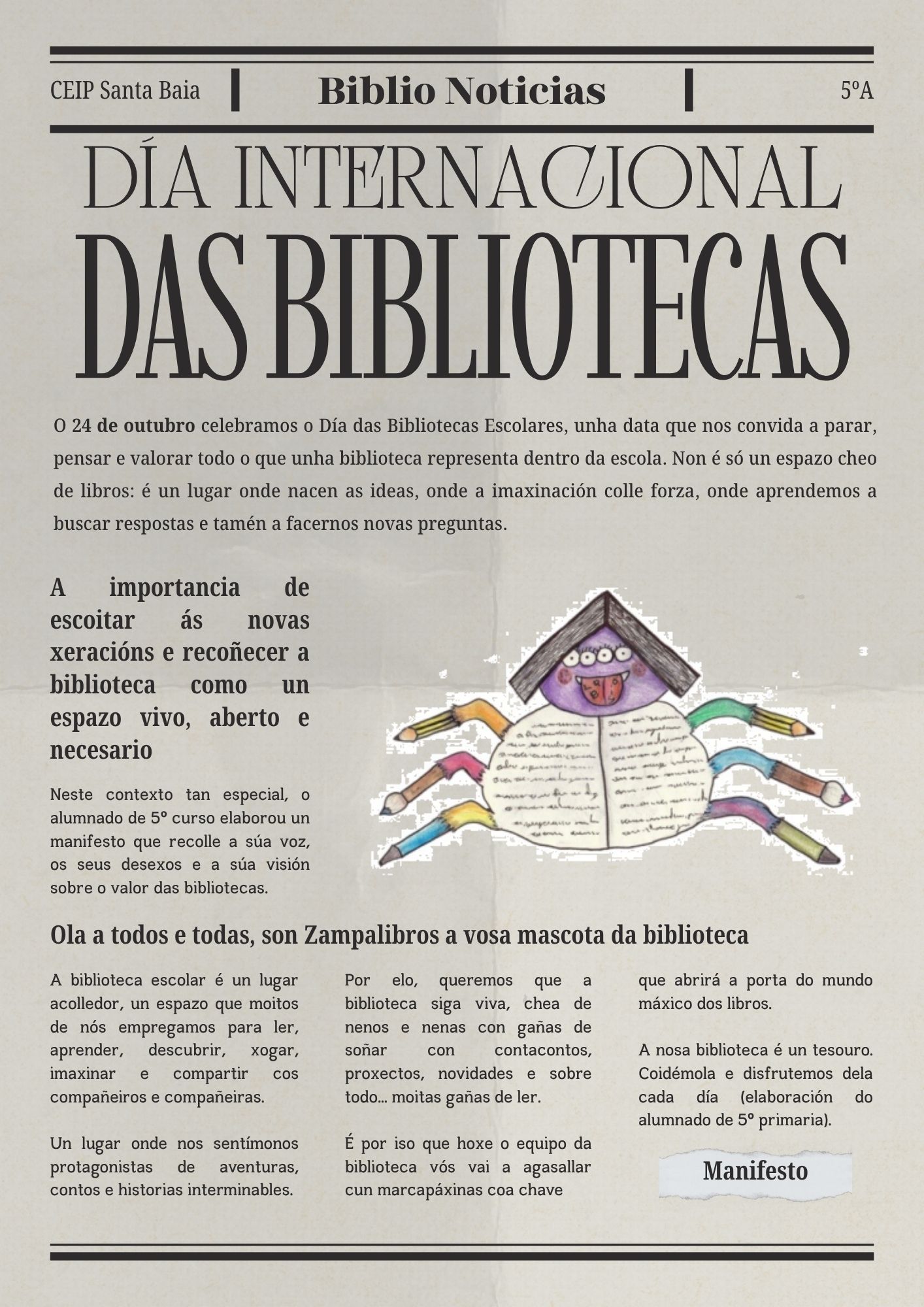 Na Biblioteca do cole vaise realizar un obradoiro o mércores 20 de marzo en horario de tarde, de 16:00 a 18:00 horas.